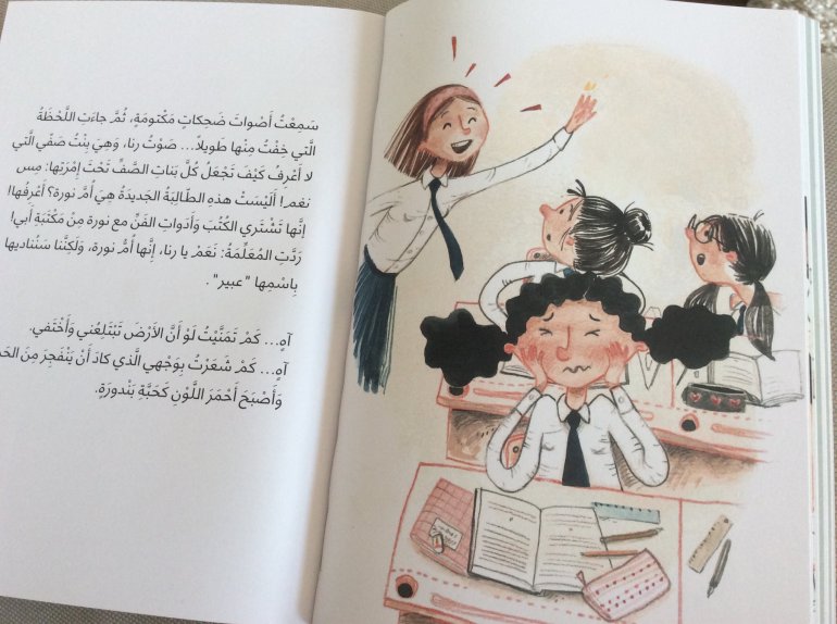 Then one day, when Noora’s mom is out sick, and the other girls genuinely miss their friend Abeer, Noora comes to appreciate her mom’s presence. In the end, her mom even helps her to write this book.